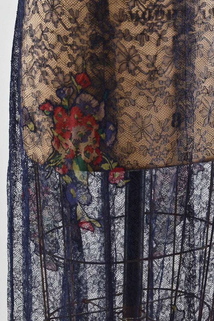 Vintage 1930s/1940s black lace with floral chiffon appliqué dress