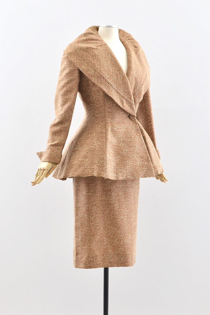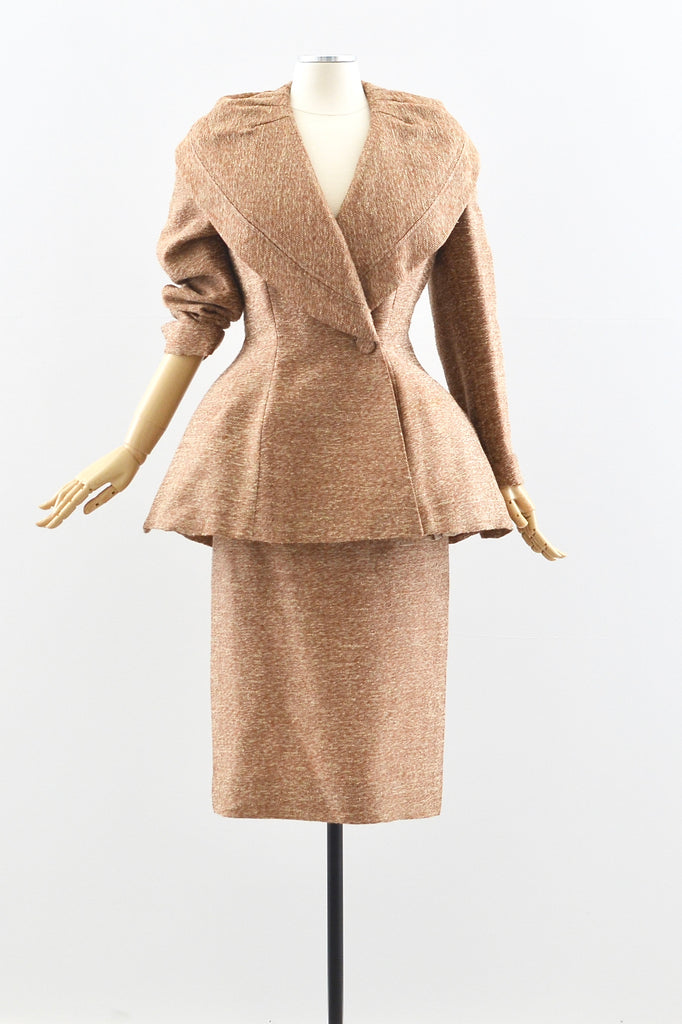 Vintage 1940s cream and brown tweed suit