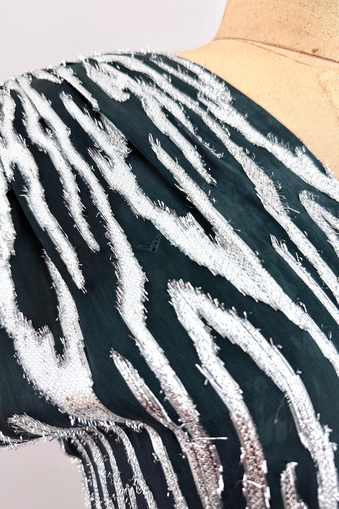 - silver lurex over dark green chiffon